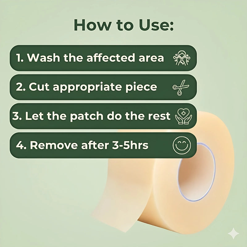 Simply clean and dry the affected area, then gently press a roll onto the blemish. Its strong adhesive ensures it stays put, working its magic while you live your life.
